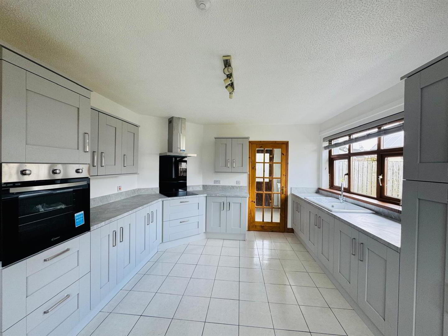 Having excellent range of eye and low level units, single drainer sink unit with mixer taps, hob, oven, stainless steel extractor hood, space for fridge/freezer, tiled floor, glazed door leading to hallway and utility.