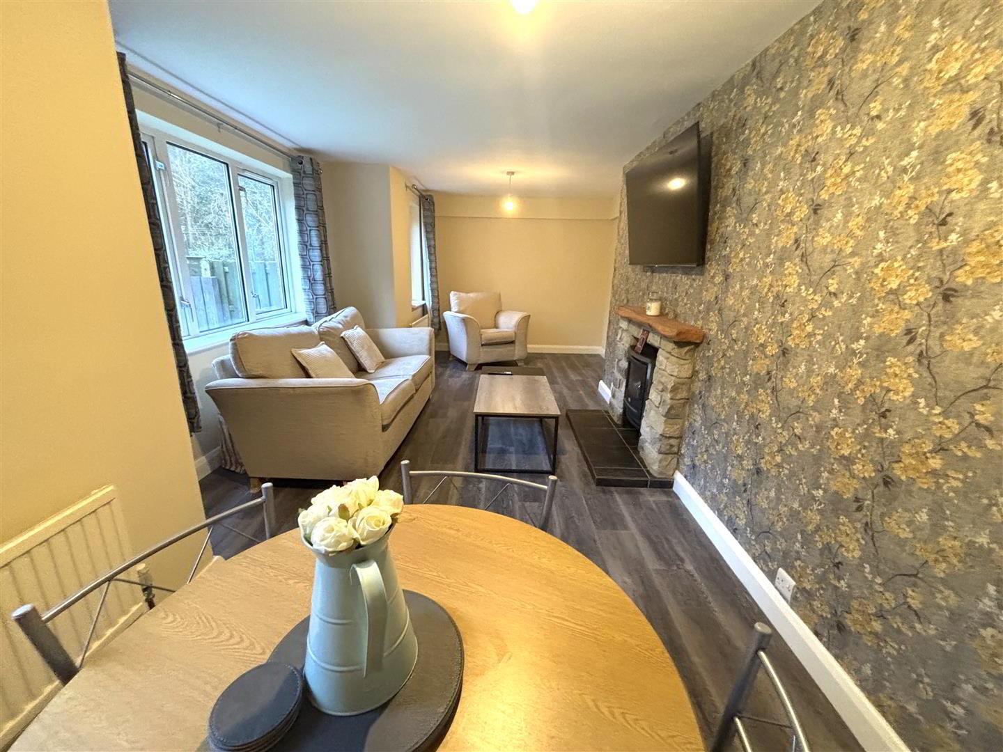 Covered and enclosed decked area to the side of the property. Large enclosed garden laid in lawn to the rear of the property.