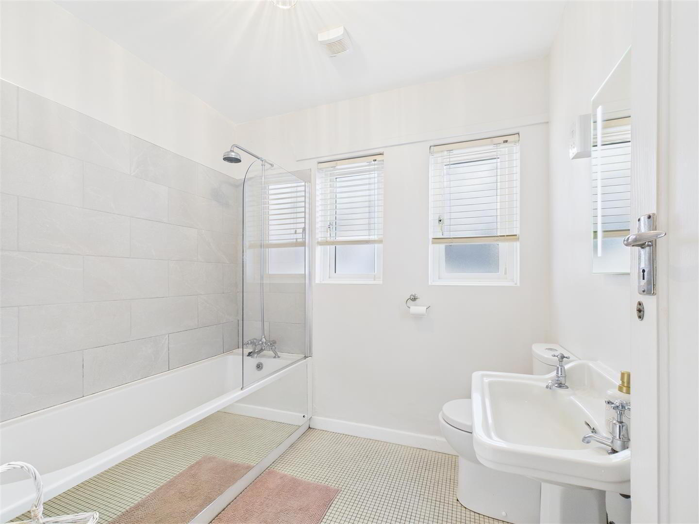 Consisting of a white fitted bath with shower attachment over bath. Pedestal wash hand basin. Low Flush W.C. Shaver point. Tiled flooring.