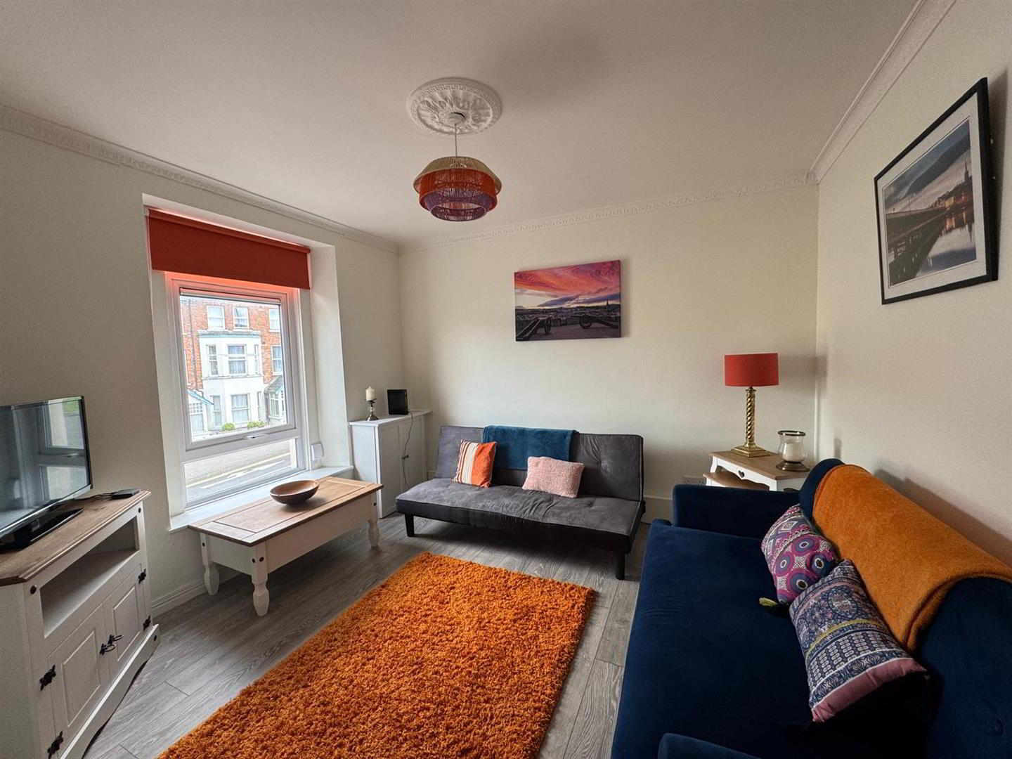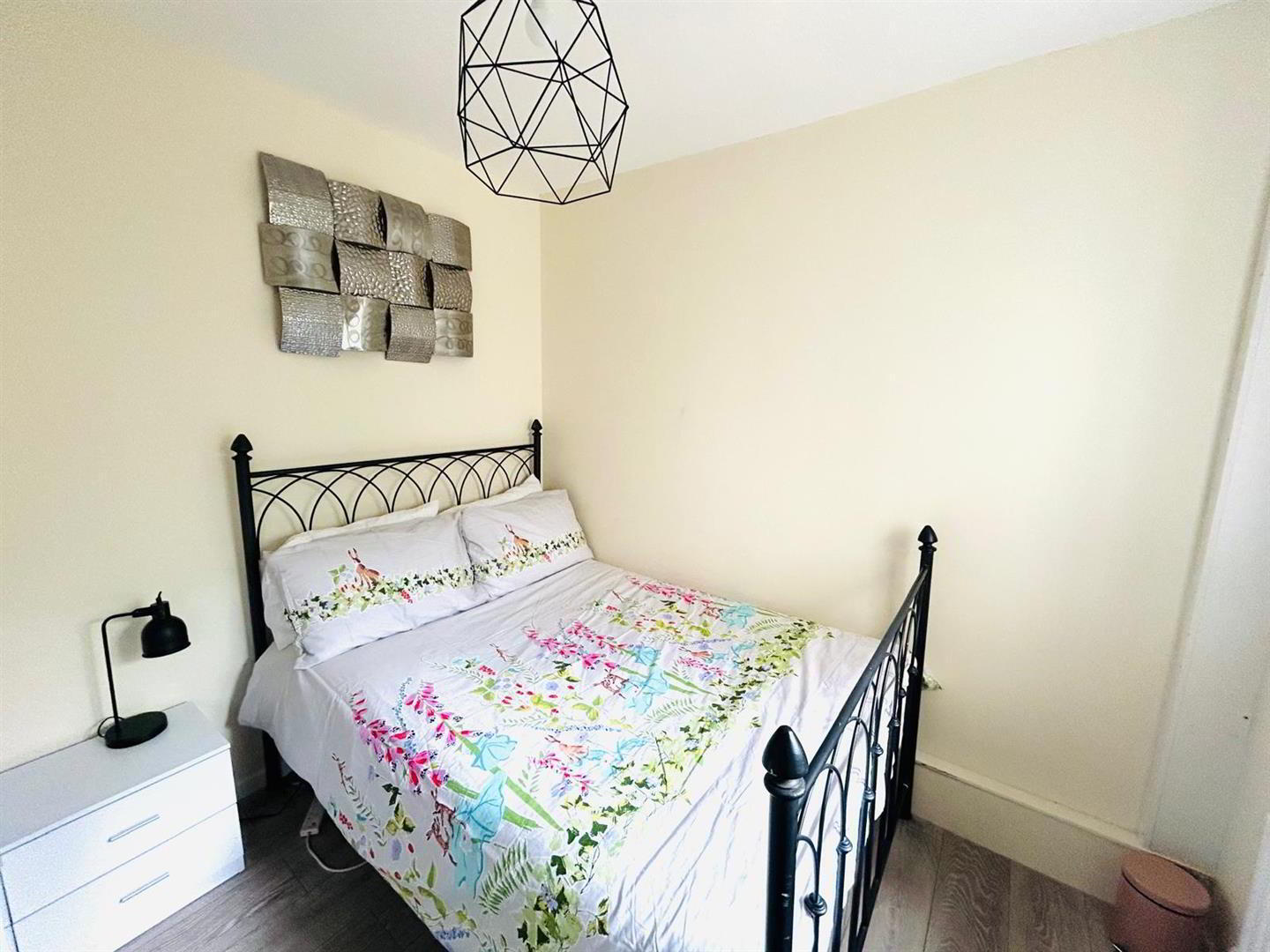 Having ceiling cornicing and centre rose, laminated wooden floor.
