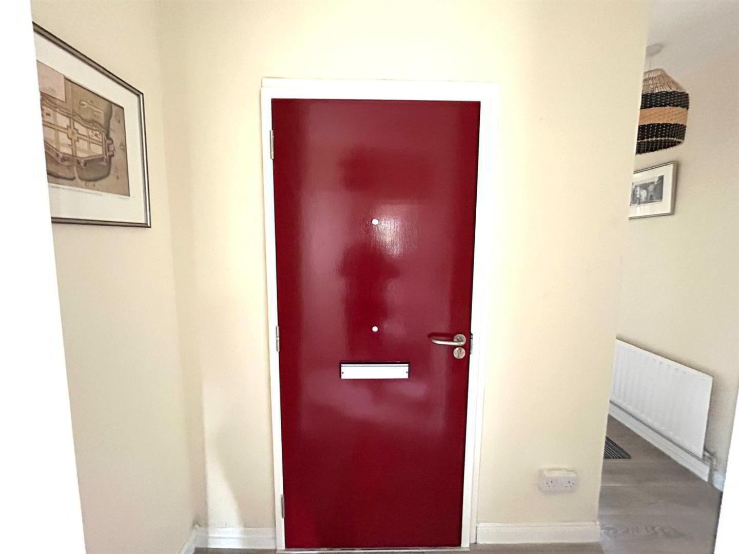 Having cloaks cupboard and laminated wooden floor.