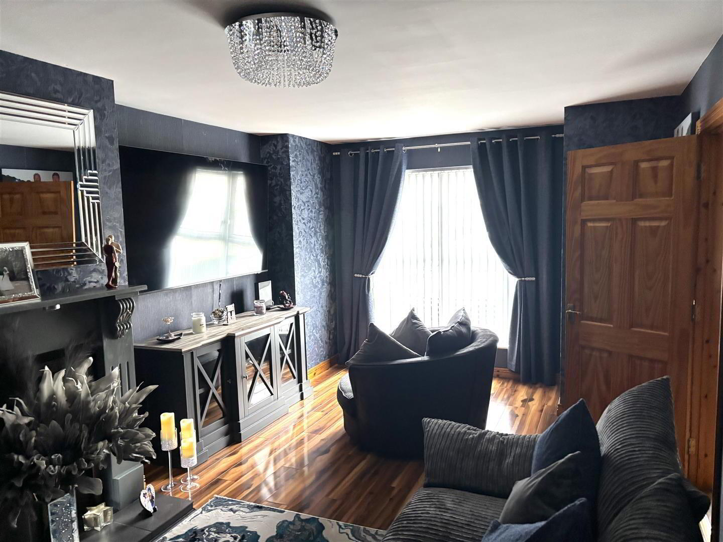Laminate flooring. Telephone point.