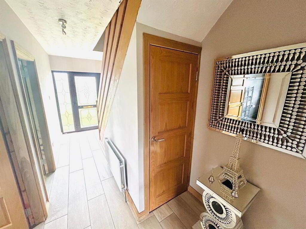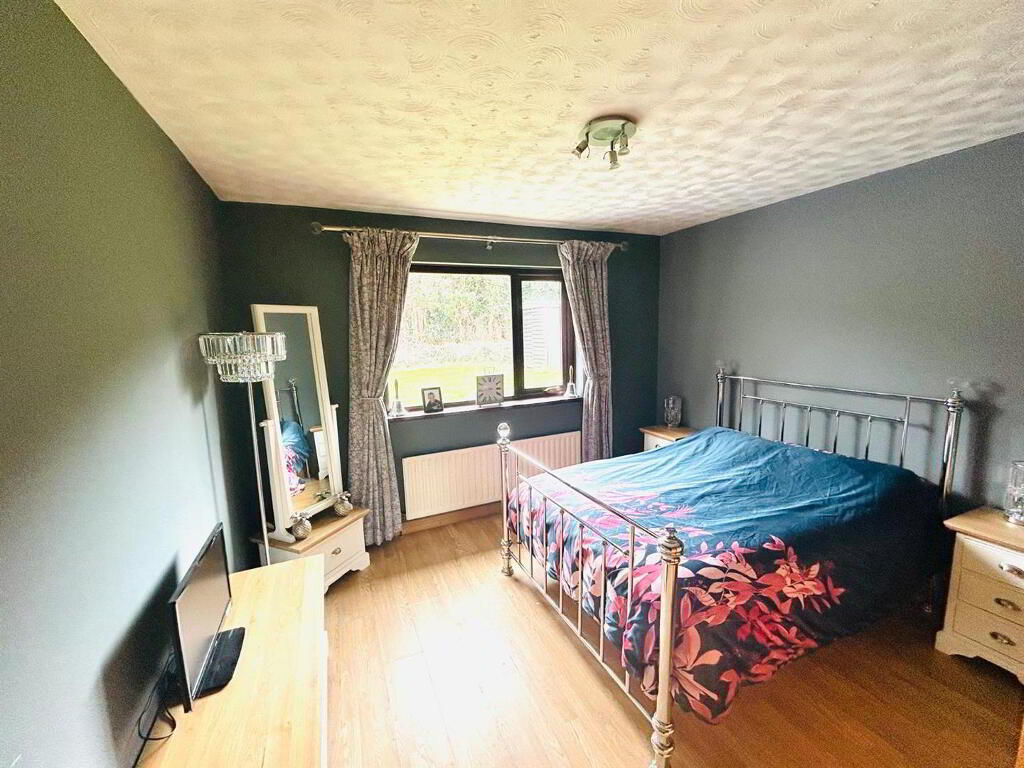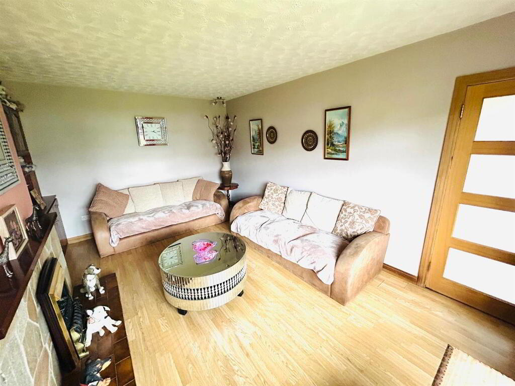 Neat lawns to front and rear. Driveway to side. Shed. Burner Store.