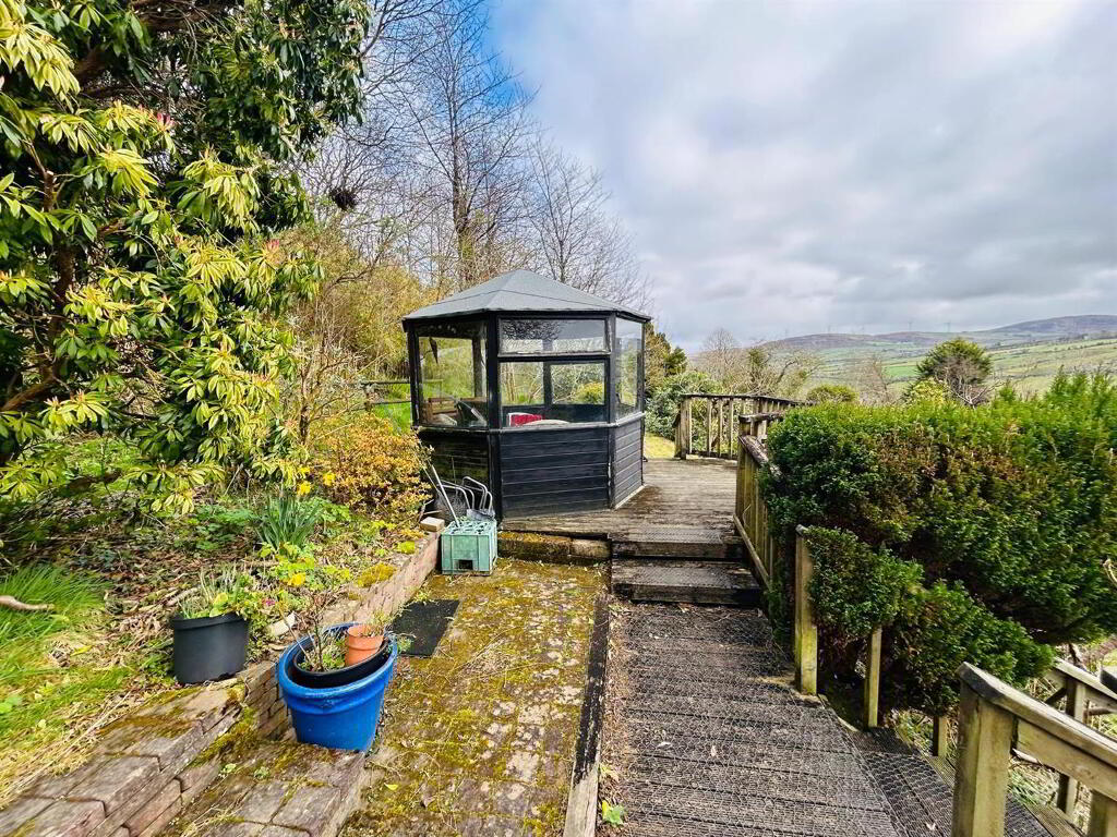 Neat lawns to front stocked with abundance of plants, trees and shrubs. Raised lawn to rear. Car port. Greenhouse. Potting shed. Gazebo.