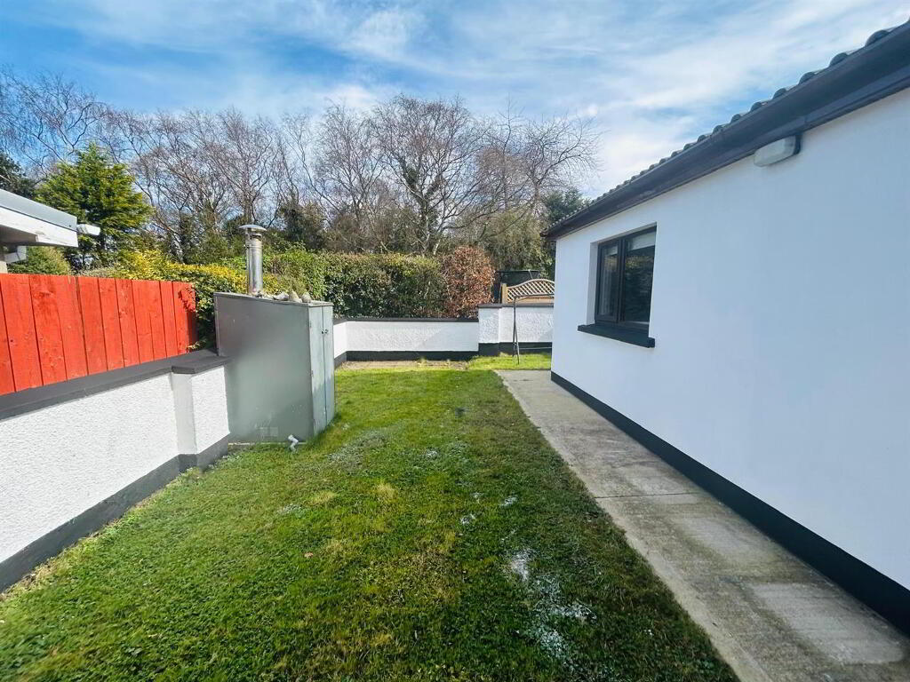Lawn to front bordered by wall and fence. Lawn to rear bordered by wall and fence. Paved patio area. Concrete driveway. Wheelchair accessible to side and rear. Outside light and tap.