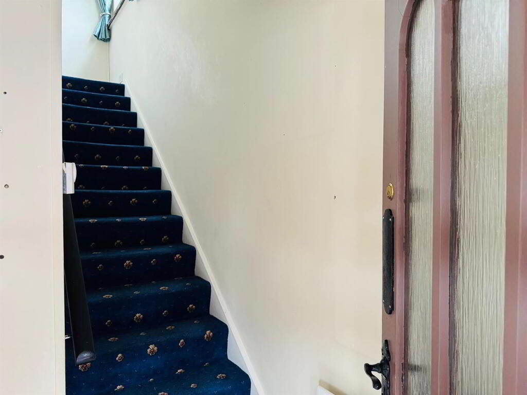 Having fireplace with mahogany surround, tiled hearth and inset, understairs storage, laminated wooden floor.