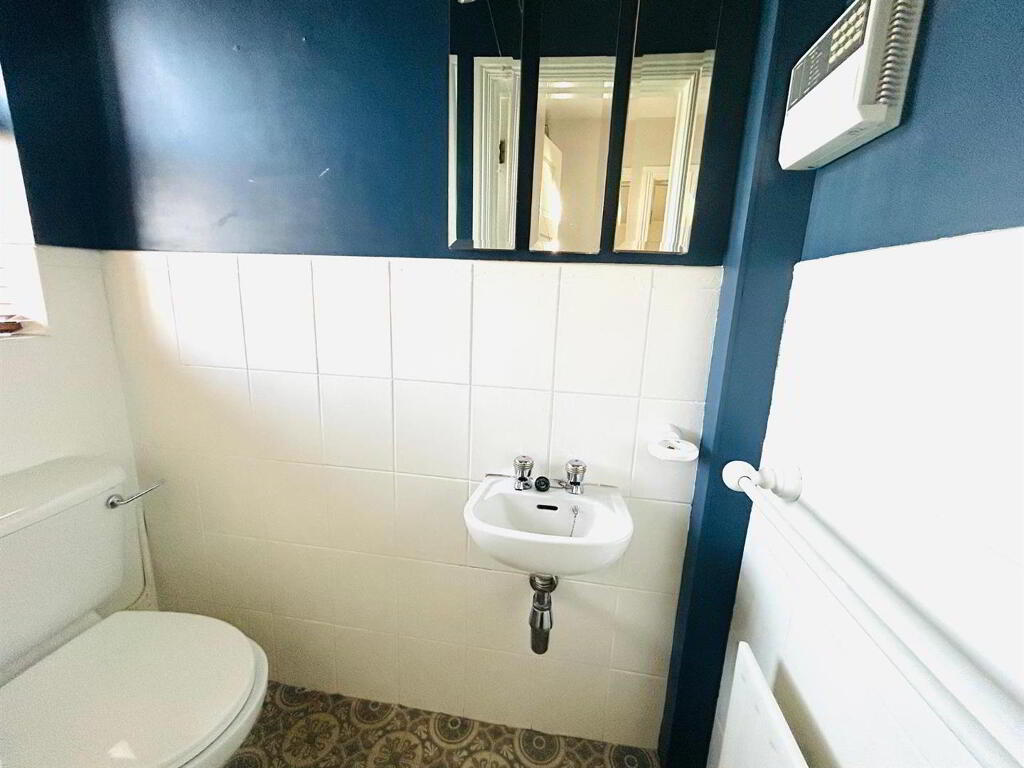 Comprising fully tiled walk in electric shower, whb with mixer taps, wc, fully tiled walls.