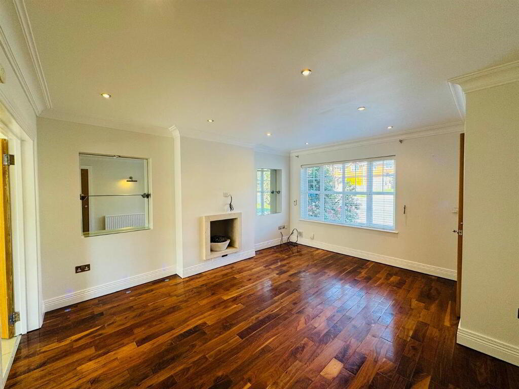 Having ceiling cornicing, wooden floor and staircase with feature lighting.