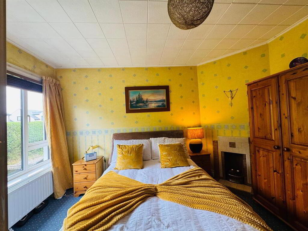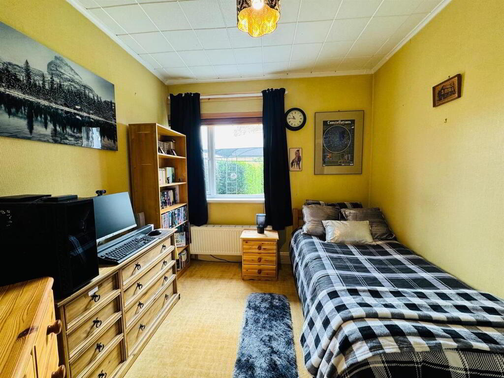Having ornamental fireplace, ceiling cornicing, built in cupboards, laminated wooden floor.