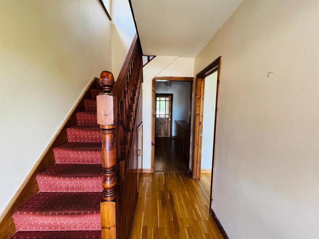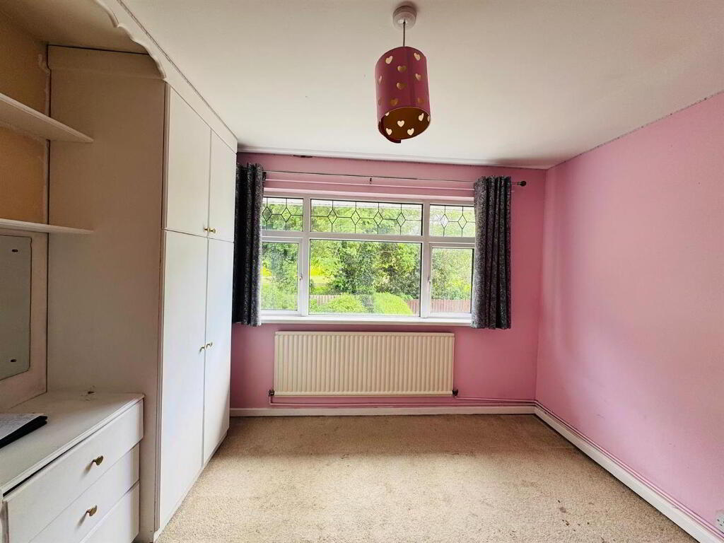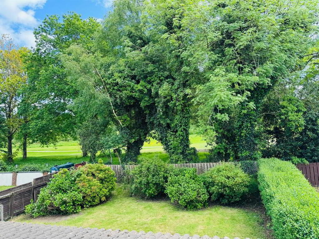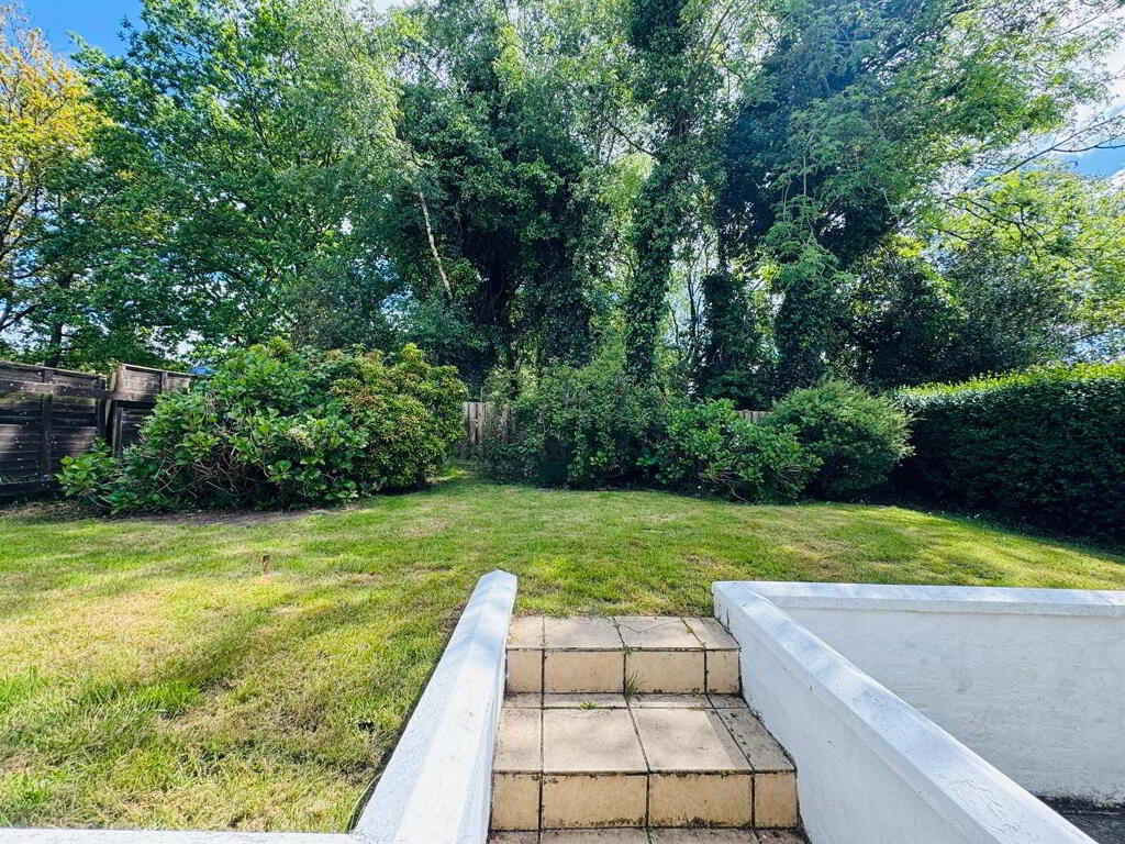 Neat lawn to front. Raised lawn to rear bordered by wall, fence and hedge. Enclosed to rear by fence and gate. Tarmac driveway.