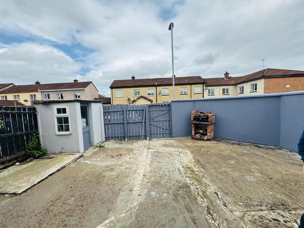 Paved yard to front bordered by wall. Concrete yard to rear enclosed by fence and gate. Shed.