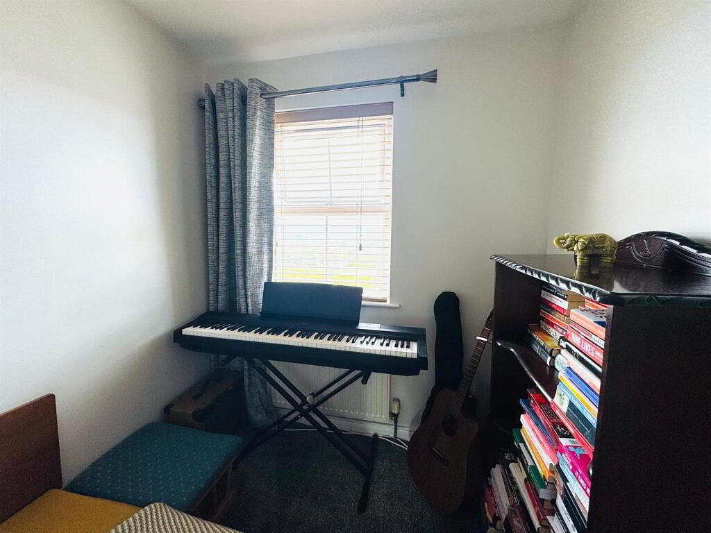 Having built in wardrobes with sliding mirrored doors and laminated wooden floor.