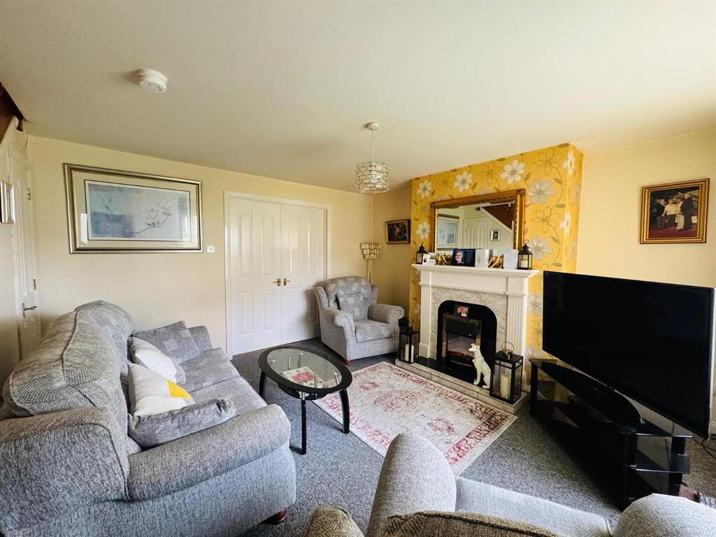 Having fireplace, understairs storage and double doors to Kitchen.