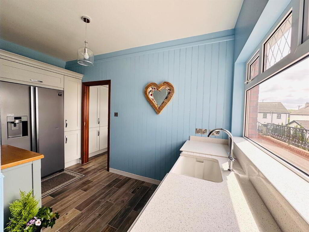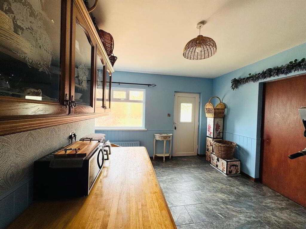 Having matching kitchen units, Belfast sink, Quartz worktops and splash backs. plumbed for washing machine, space for fridge/freezer, space for tumble dryer, double cloaks cupboard, tiled floor.