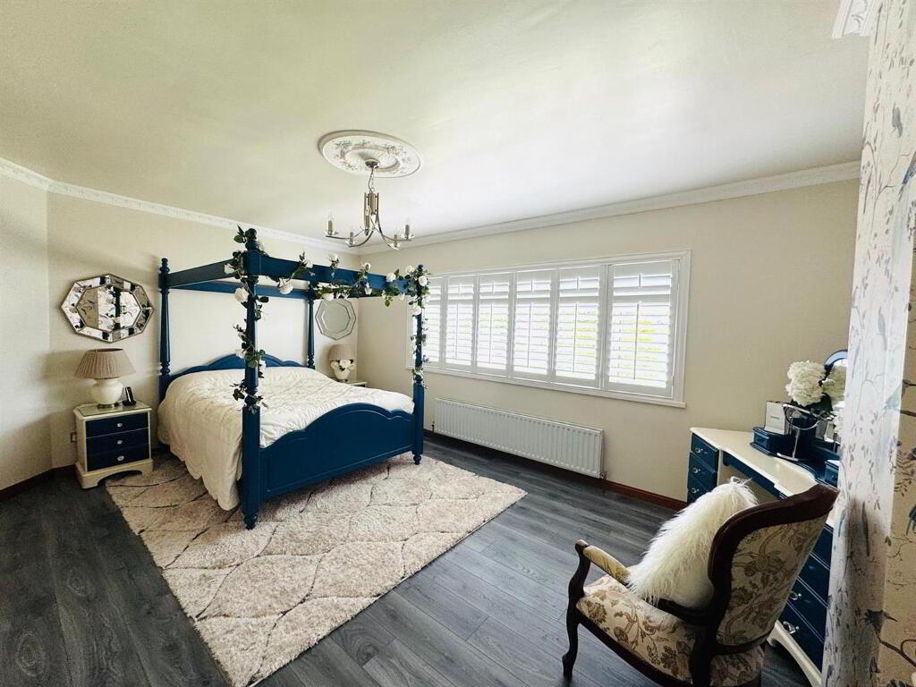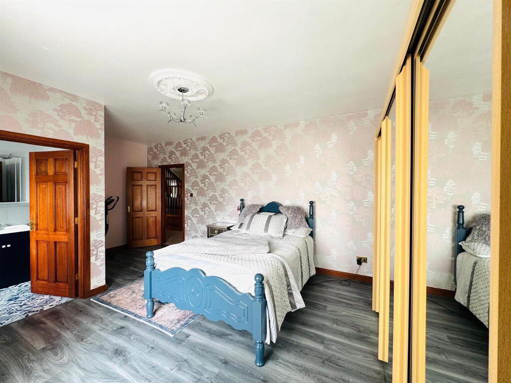 Having wall to wall built n wardrobes with mirrored sliding doors, ceiling cornicing, centre rose, walk in wardrobe, laminated wooden floor.