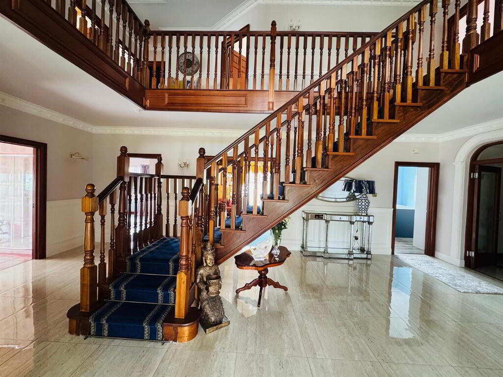Having central staircase, ceiling cornicing, 1/2 height wooden panelled walls, walls lights points.