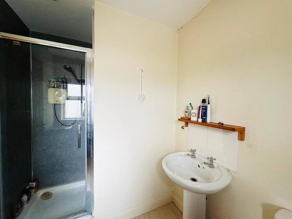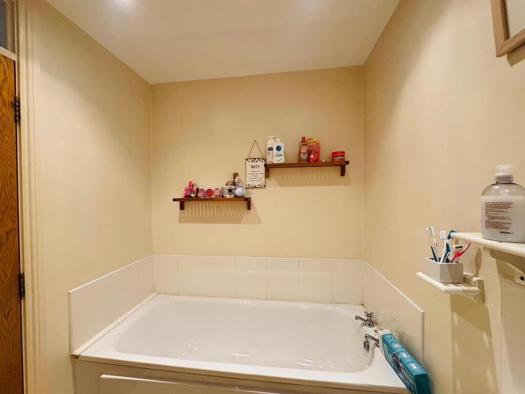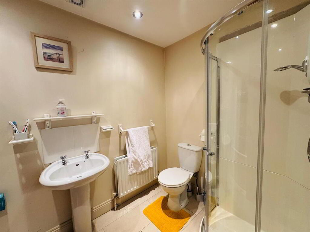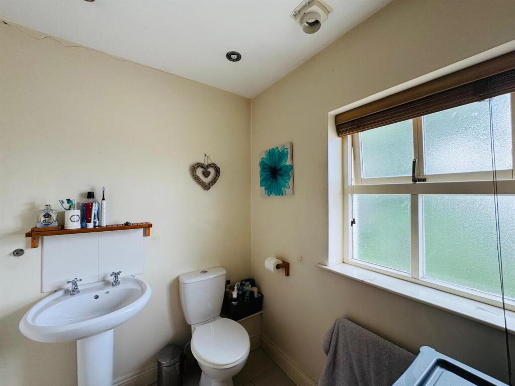 Comprising bath, walk in shower, whb & wc, tiled floor.