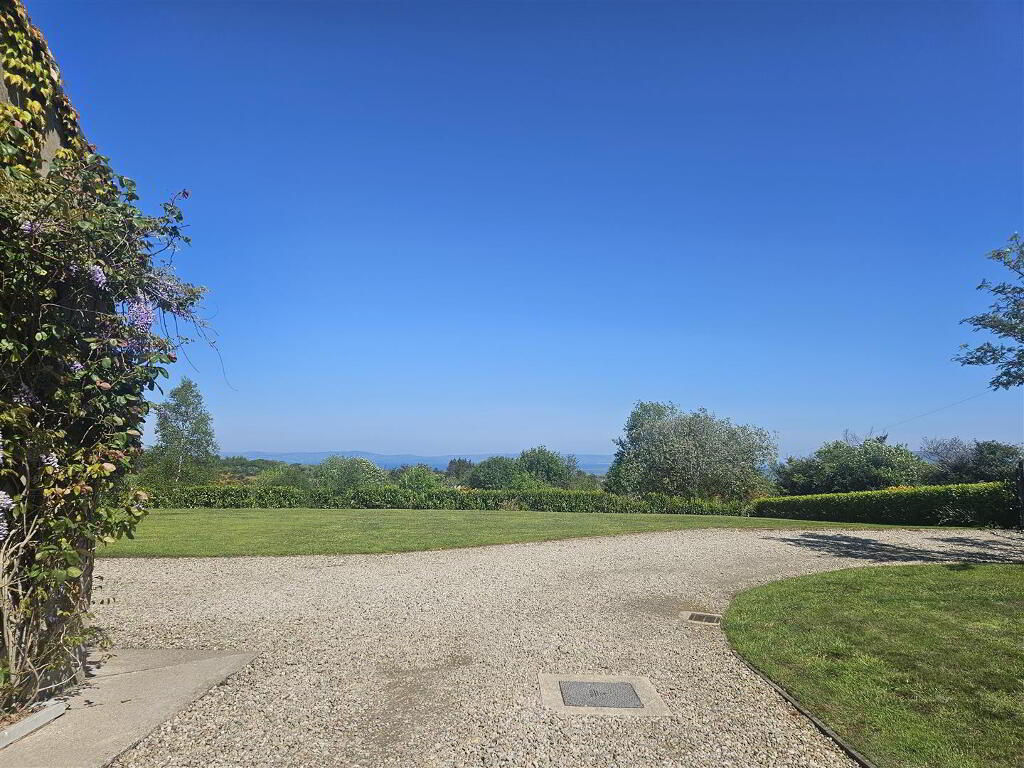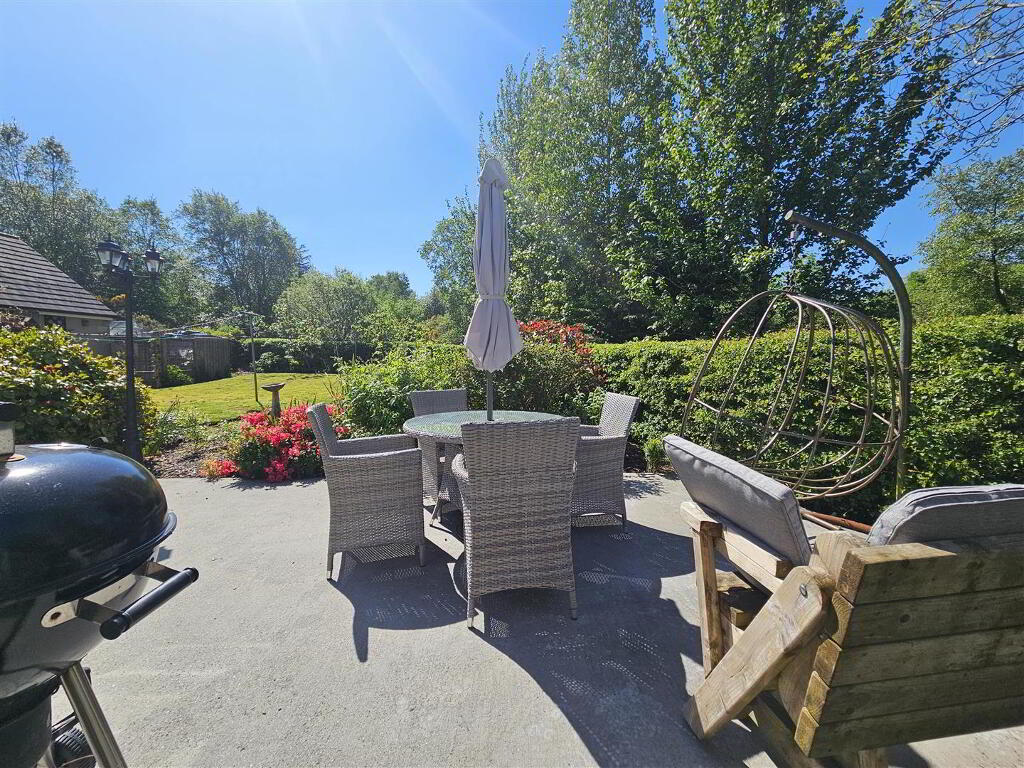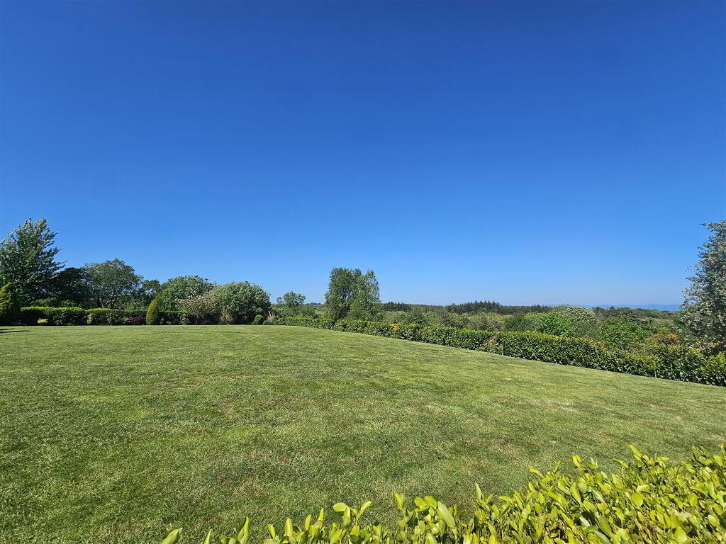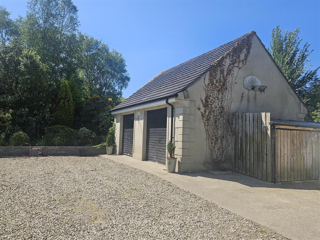 Stone driveway with parking for a number of cars. Double garage. Large garden to the front of the house laid in lawn and surrounded by mature hedging. Enclosed rear garden laid in lawn and with small pond.