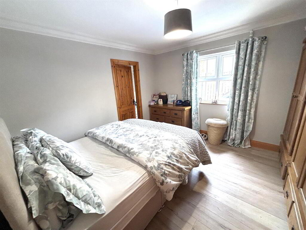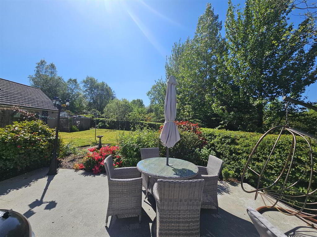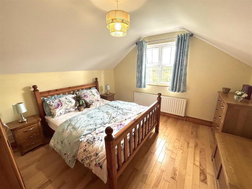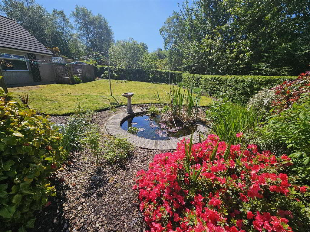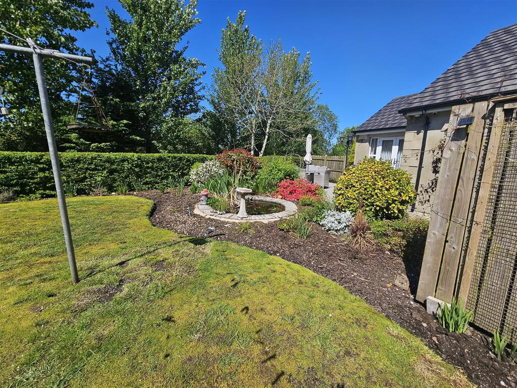 Stone driveway with parking for a number of cars. Double garage. Large garden to the front of the house laid in lawn and surrounded by mature hedging. Enclosed rear garden laid in lawn and with small pond.