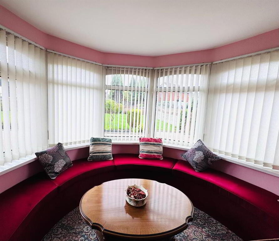 Haing bay window with feature window seating, ceiling cornicing and centre rose.