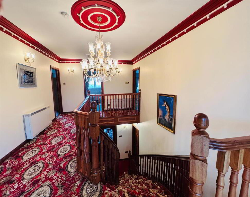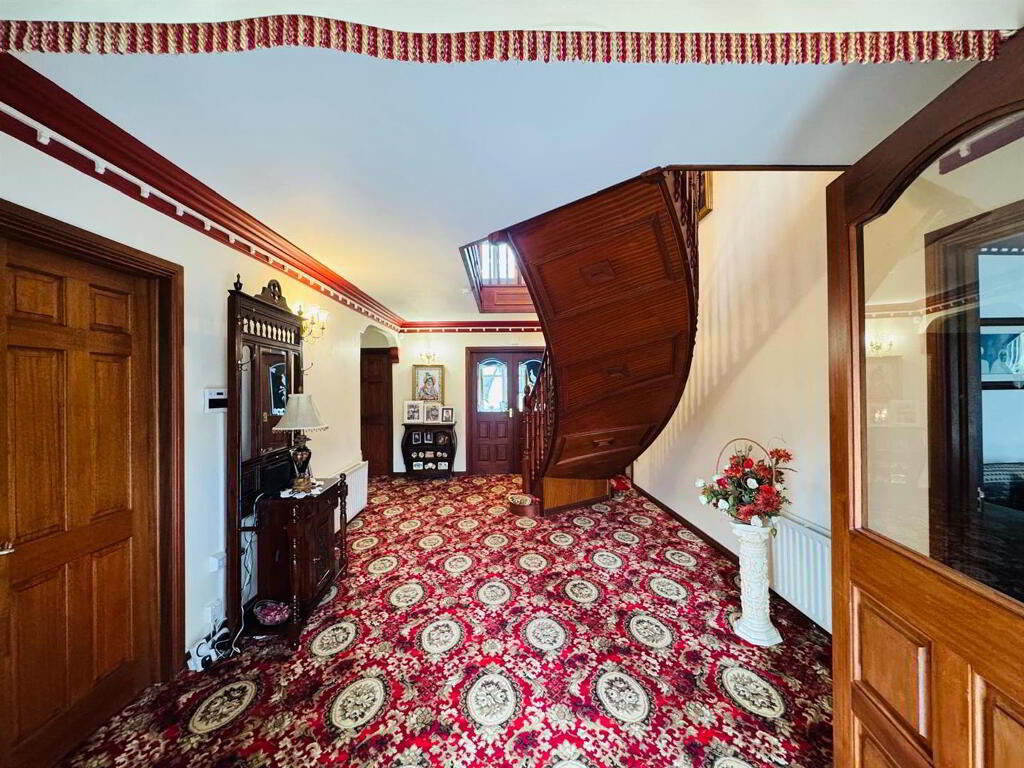 Having wall light points, ceiling cornicing, curved staircase, double doors to Lounge.
