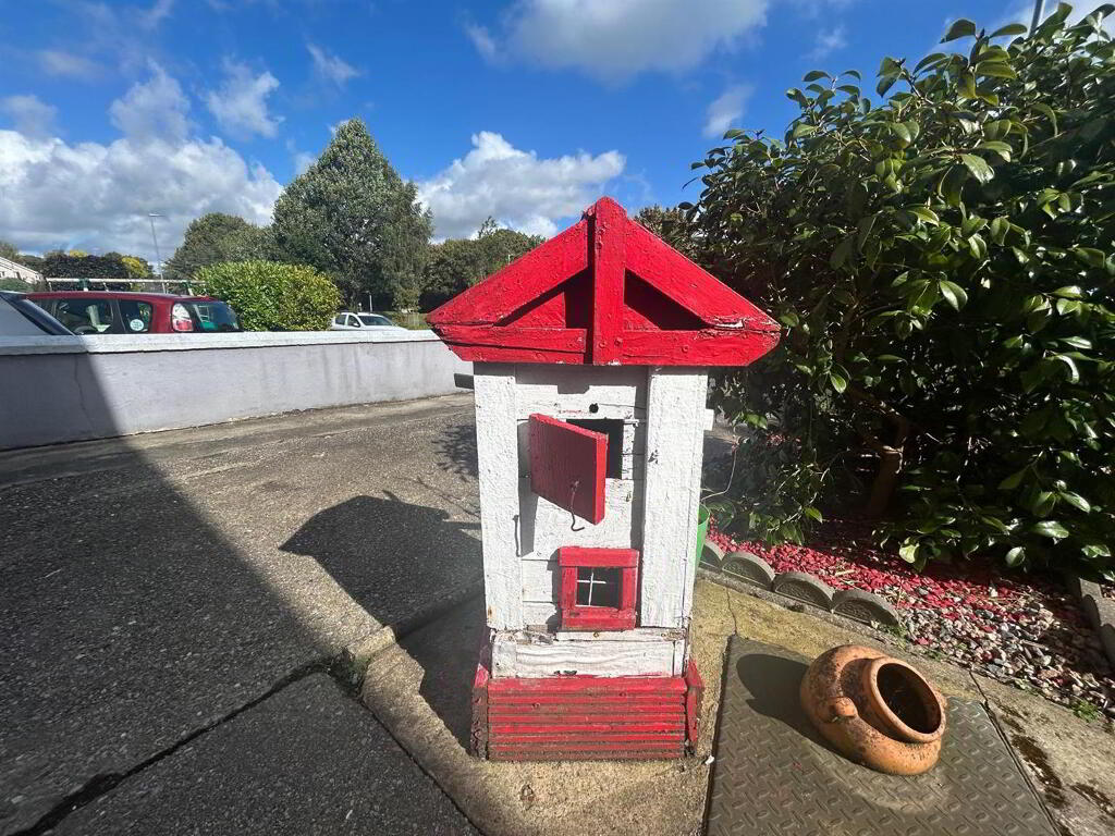 Pebbled yard to front bordered by fence. Enclosed private lawn to rear bordered by mature plants and trees. Driveway to side. Exterior electric sockets.