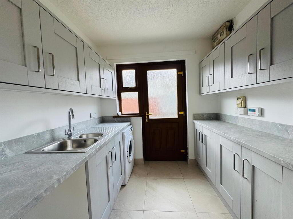 Having excellent range of eye and low level units, single drainer sink unit with mixer taps, hob, oven, stainless steel extractor hood, space for fridge/freezer, tiled floor, glazed door leading to hallway and utility.