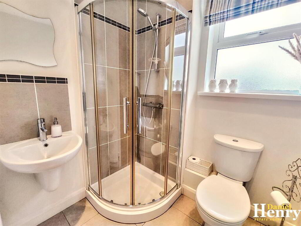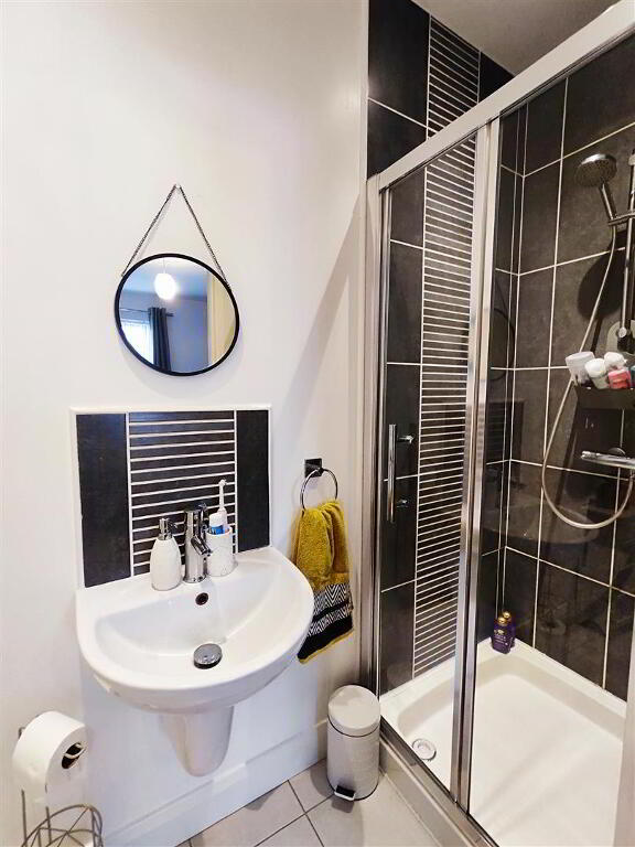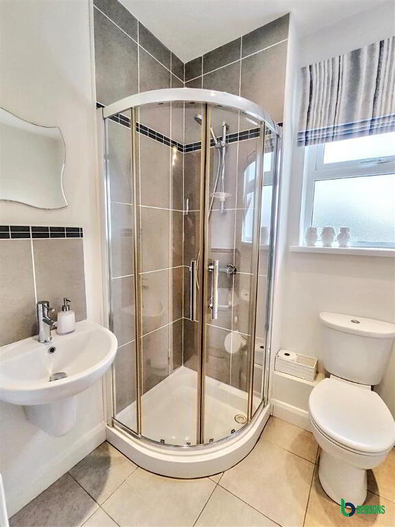 With ensuite comprising fully tiled walk in shower cubicle, wc, wash hand basin, extractor fan, recessed lights and tiled floor.