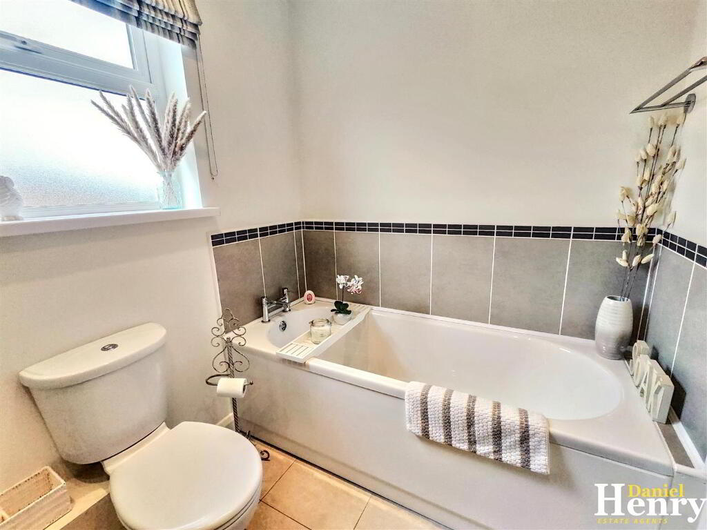 With tiled flooring. Cloakroom comprising wc and wash hand basin with extractor fan and tiled flooring.