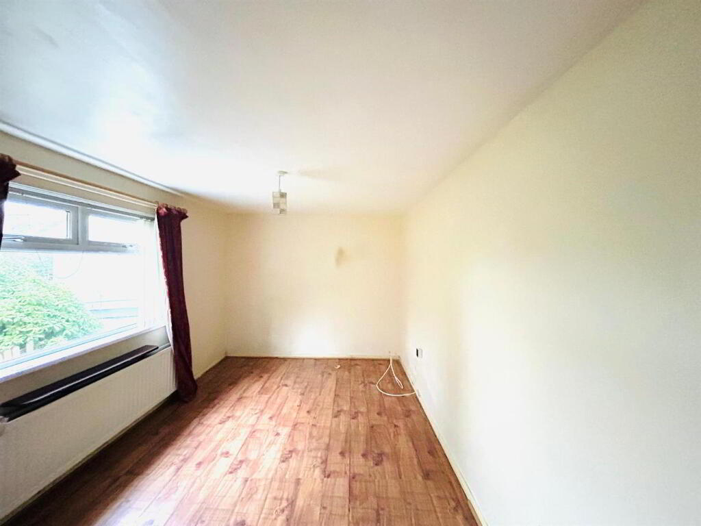 Having fireplace with cast iron inset and tiled hearth, laminated wooden floor.