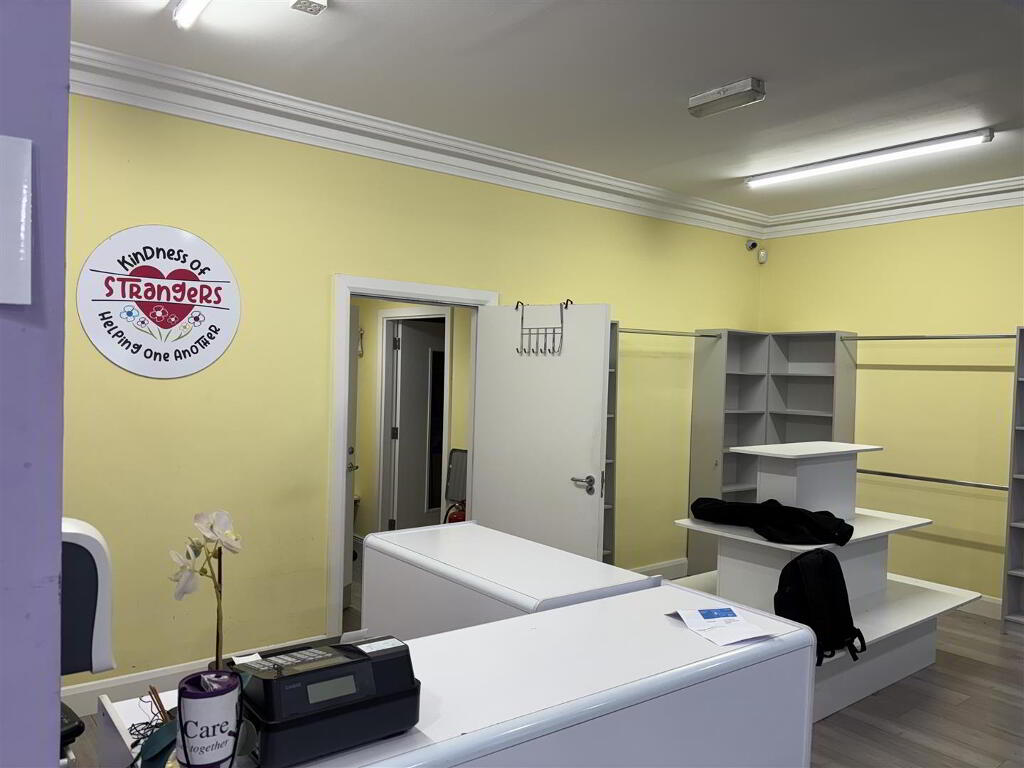 Opening onto Castle Street. Having shelving and counter, laminated wooden floor.