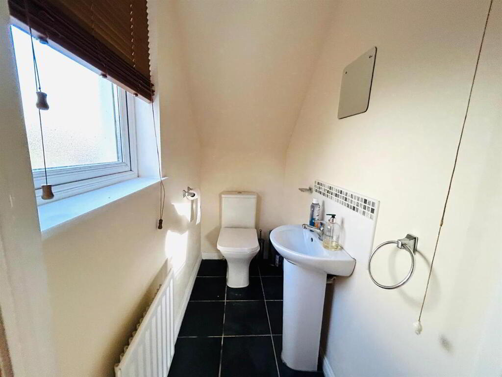 Having whb with mixer taps and tiling around, wc, tiled floor.