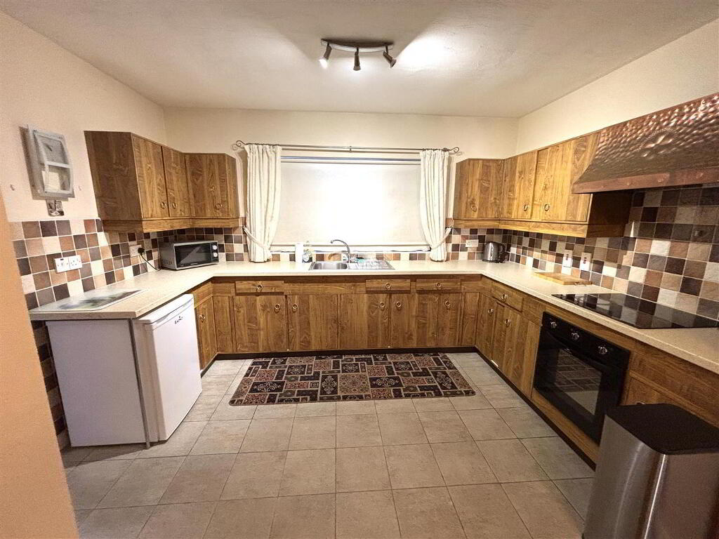 Fitted with a range of eye and low level units with matching worktop. Tiled around units. Stainless steel sink unit. Built in hob and oven. Extractor fan and light. Tiled flooring.