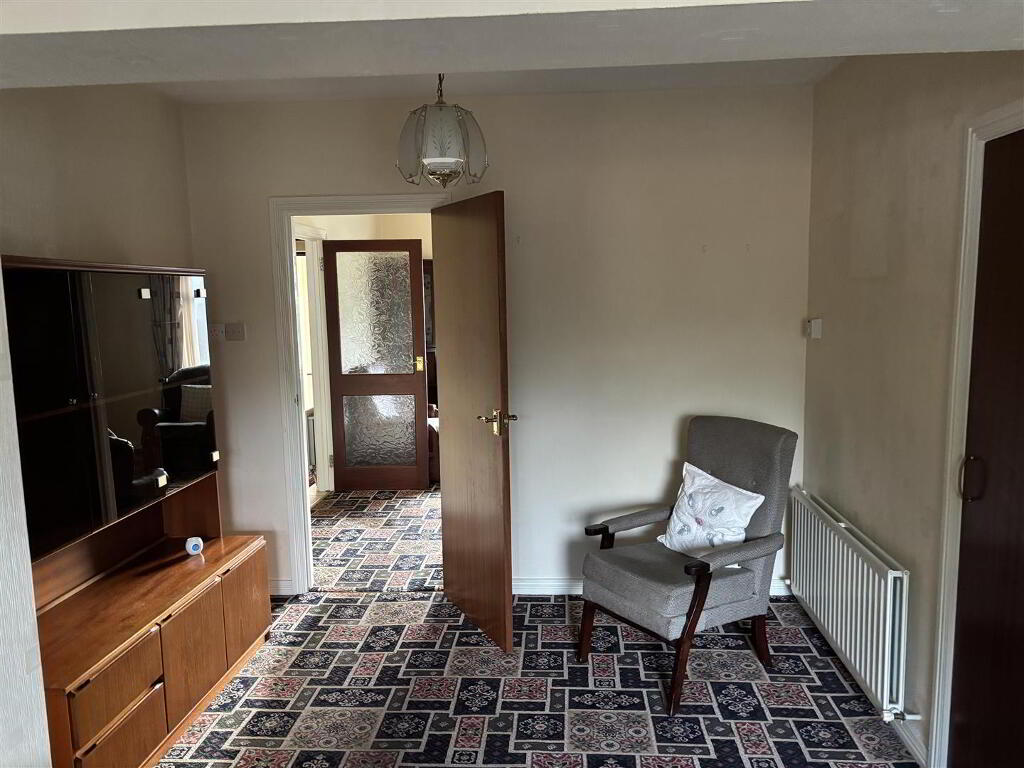 Fitted with a wooden fireplace with tiled inset and tiled hearth. Carpet flooring.