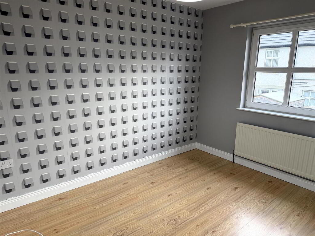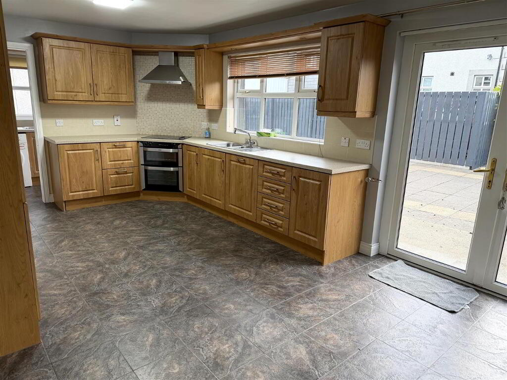 Fitted with a range of eye and low level units with matching work top. Tiled around units. Stainless steel sink unit. Built in hob and oven. Stainless steel extractor fan and light. Plumbed for dishwasher. Tiled flooring. Pelmet over window. Double uPVC doors to enclosed rear yard.