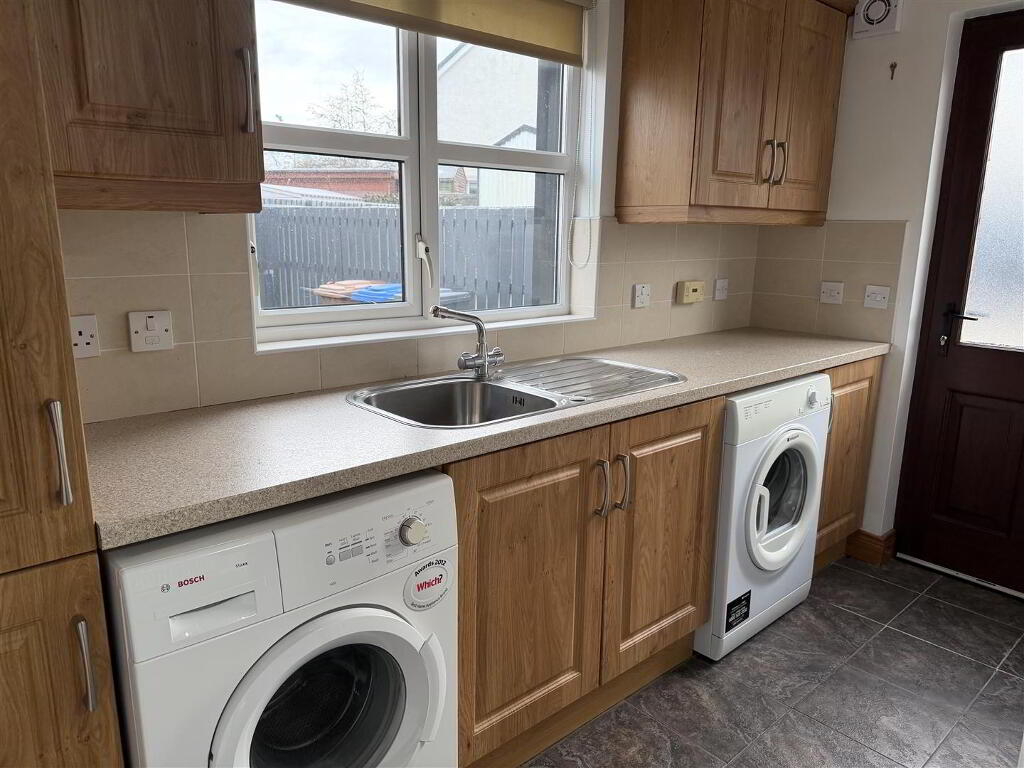 Fitted with a range of eye and low level units with matching worktop. Stainless sink unit. Tiled around units. Plumbed for automatic dishwasher. Ducted for tumble dryer. Tiled flooring.