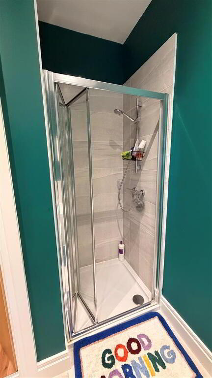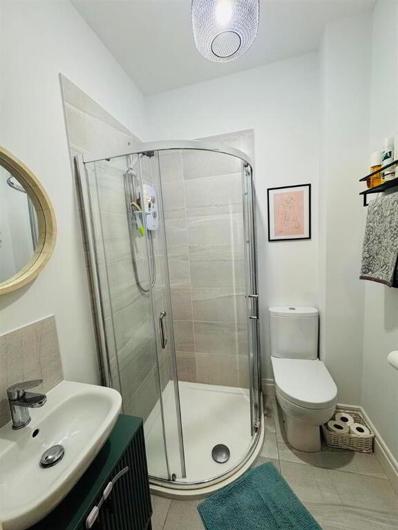 Comprising tiled walk in electric shower, whb and wc, tiled floor.