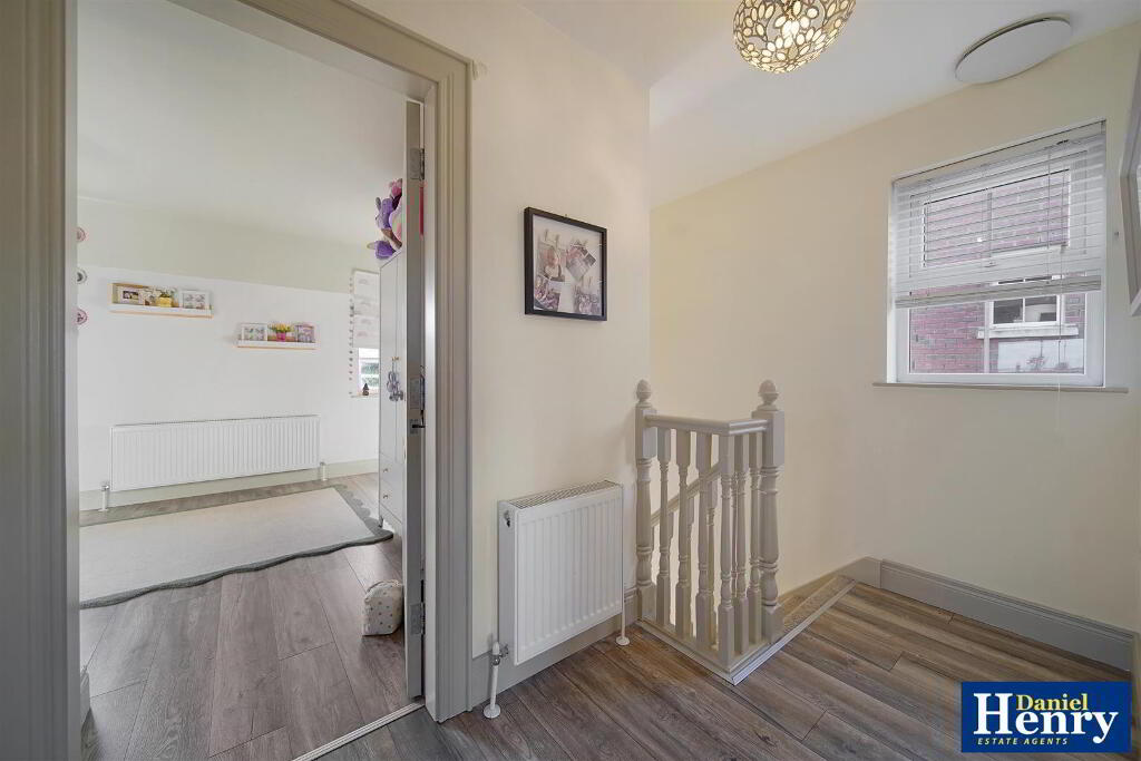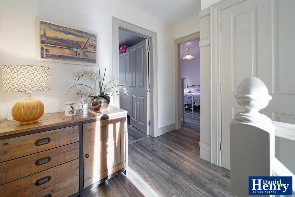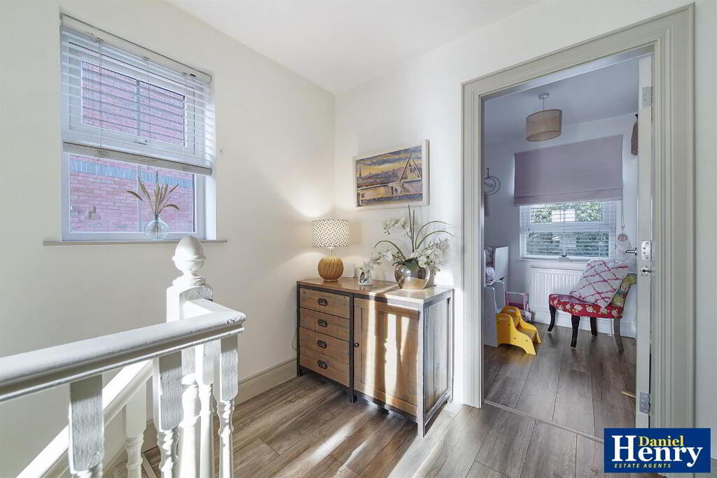 Having airing cupboard, feature panelled wall, laminated wooden floor.