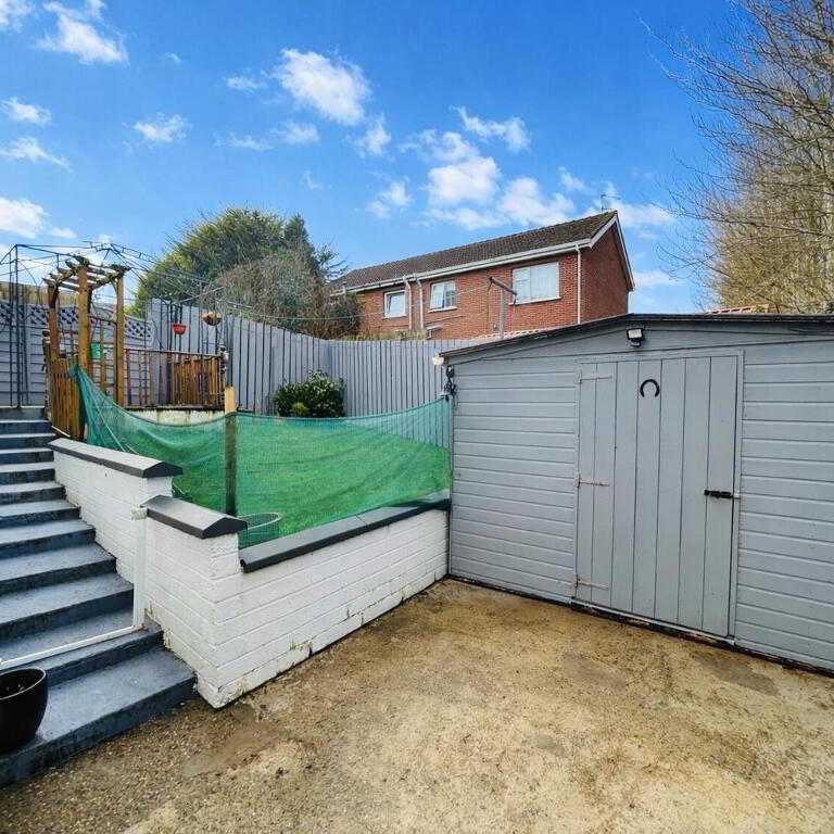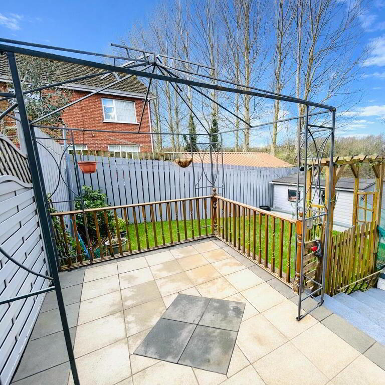 Shed with light and power points. Neat lawns to front and rear. Paved patio area to rear with pergola. Driveway to side.