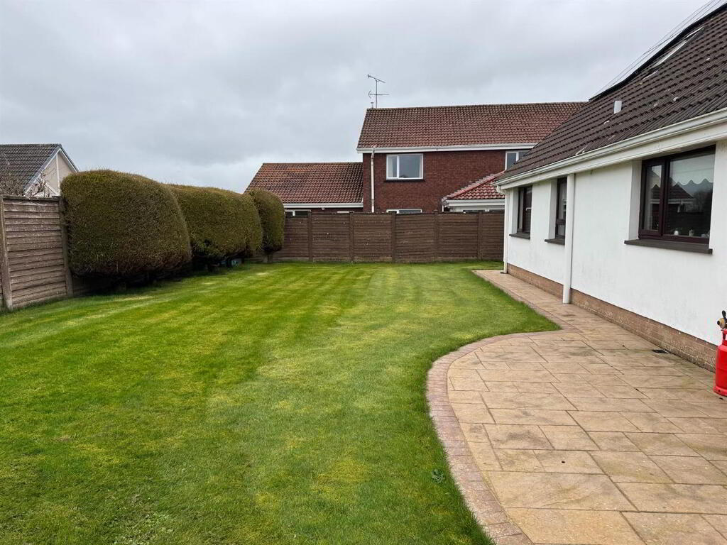 Lawn to front. Paved patio area to rear leading to neat lawn. Paved driveway.