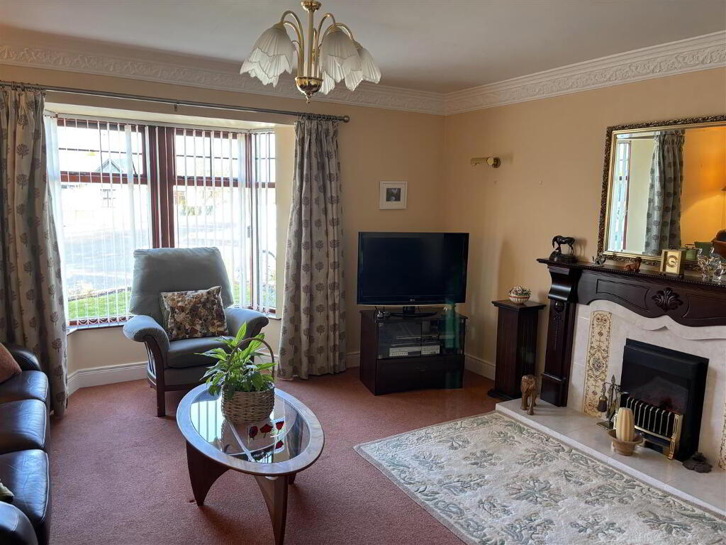 having Mahogany fireplace with tiled inset and hearth, points for wall lights, coving around ceiling and centre piece, feature bay window.