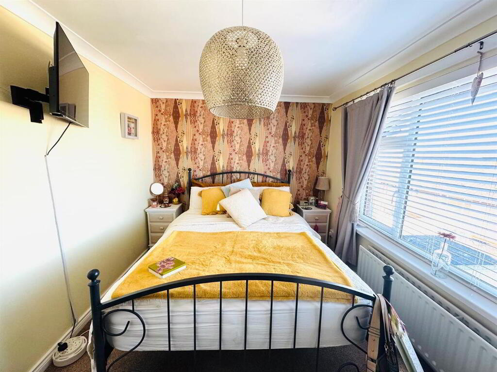 Having ornamental electric fire, picture rail, laminated wooden floor.