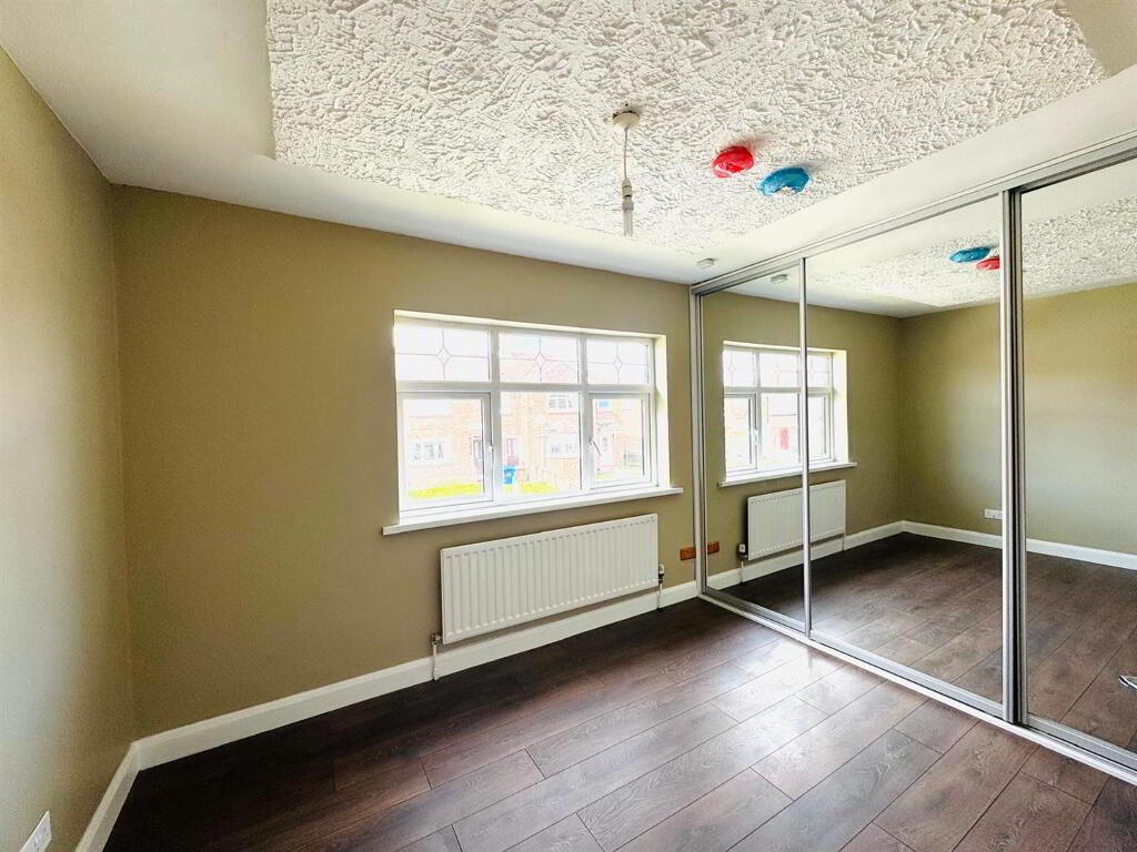 Having built in wardrobes with sliding mirrored doors, laminated wooden floor.