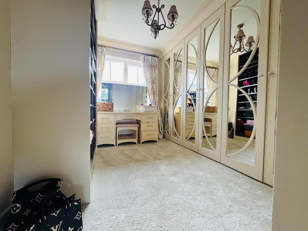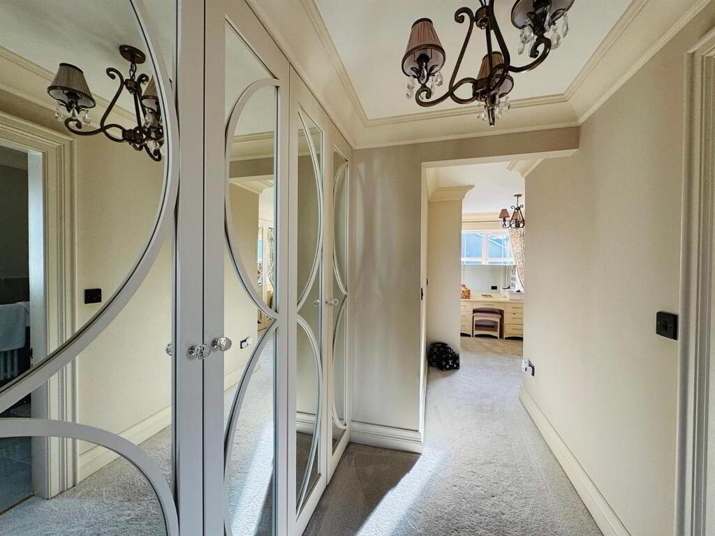 Having ceiling cornicing, range of built in wardrobes with feature mirror doors, range of built in wardrobes, shelving and dressing table.