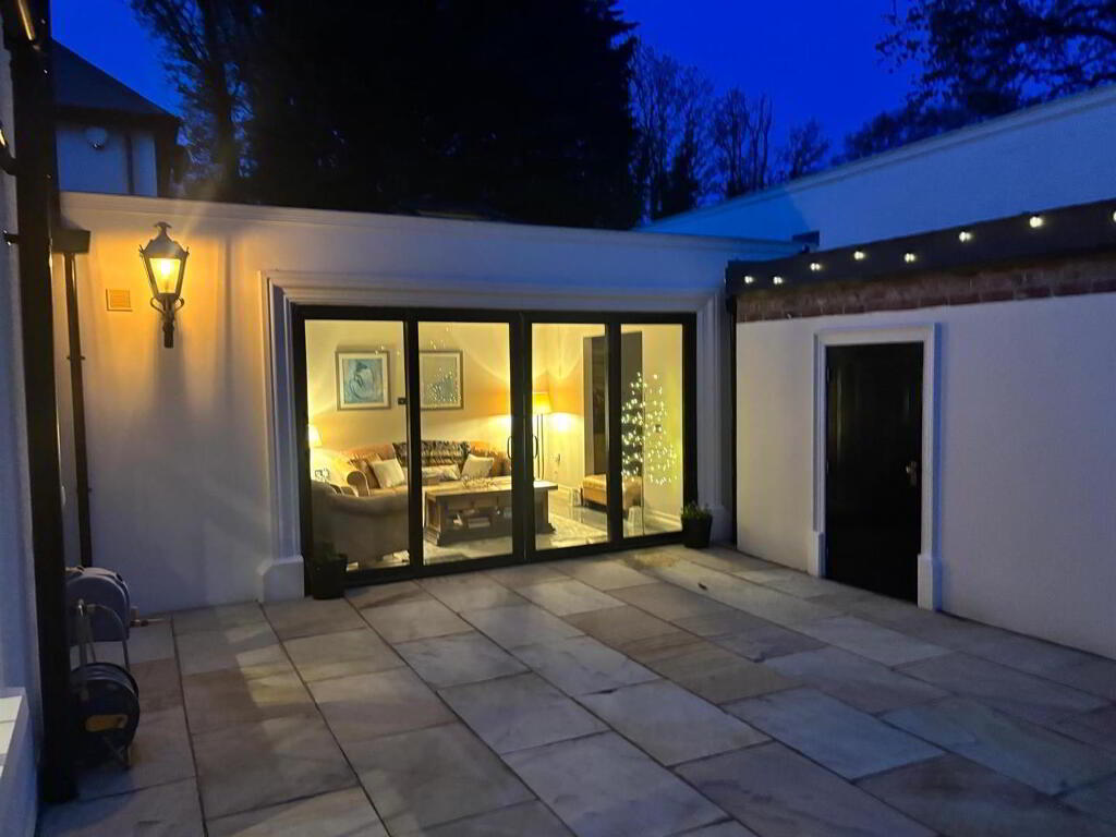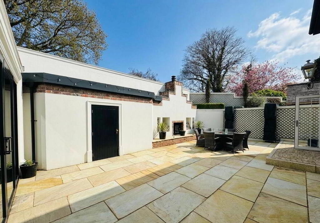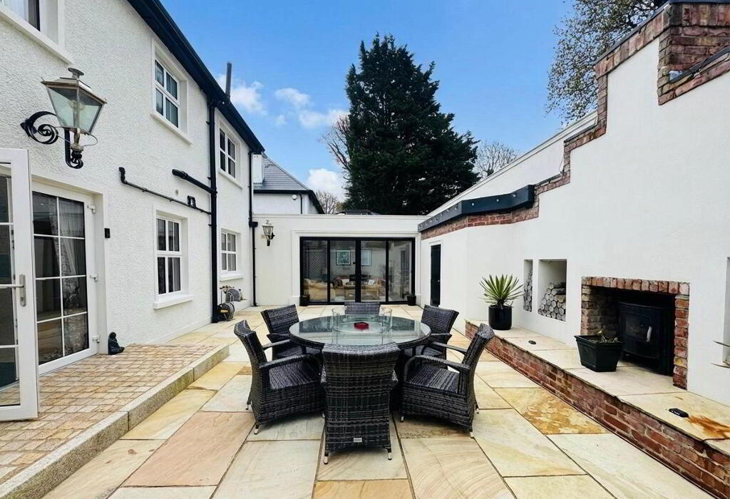 Enclosed paved yard to rear with feature fireplace and stove. Exterior lighting to front. Sensor lighting to rear. Paved driveway.