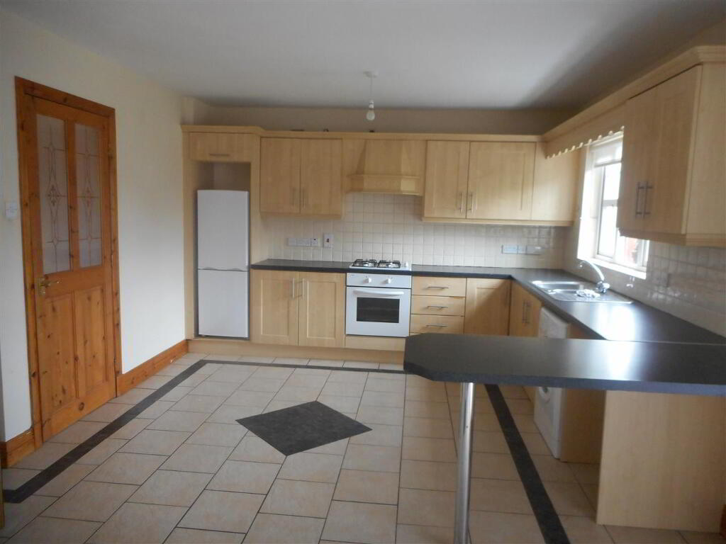 Having range of eye and low level units, matching pelmet over window and extractor canopy, 1 1/2 bowl stainless steel sink unit with mixer taps, breakfast bar, plumbed for washing machine, tiling between units, tiled floor, French doors to patio area.