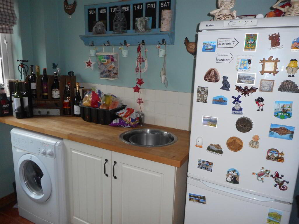 Having low level units, stainless steel sink unit with mixer taps, space for fridge / freezer, plumbed for washing machine, extractor fan, tiled floor.