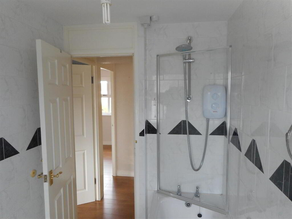 Comprising bath with electric shower over, whb and wc, fully tiled wall, tiled floor.