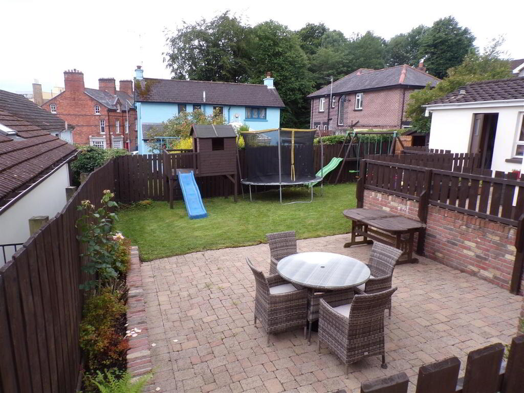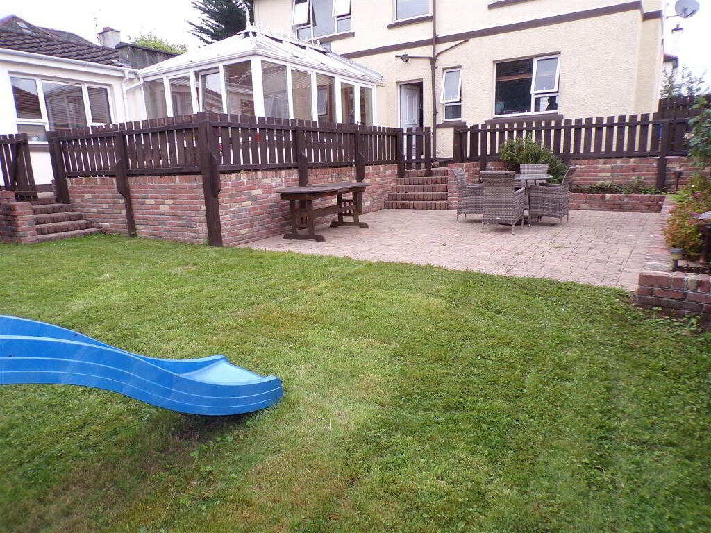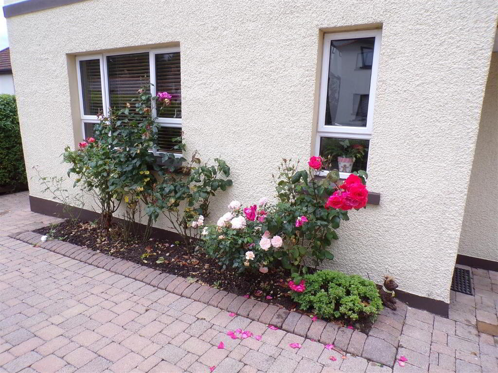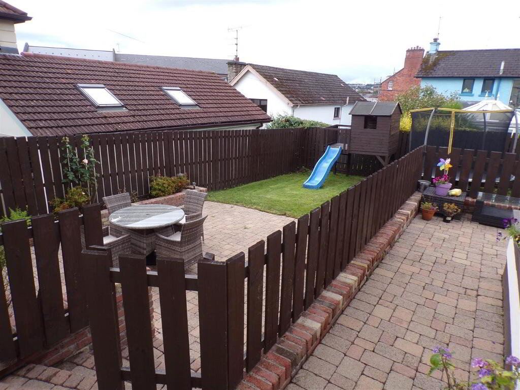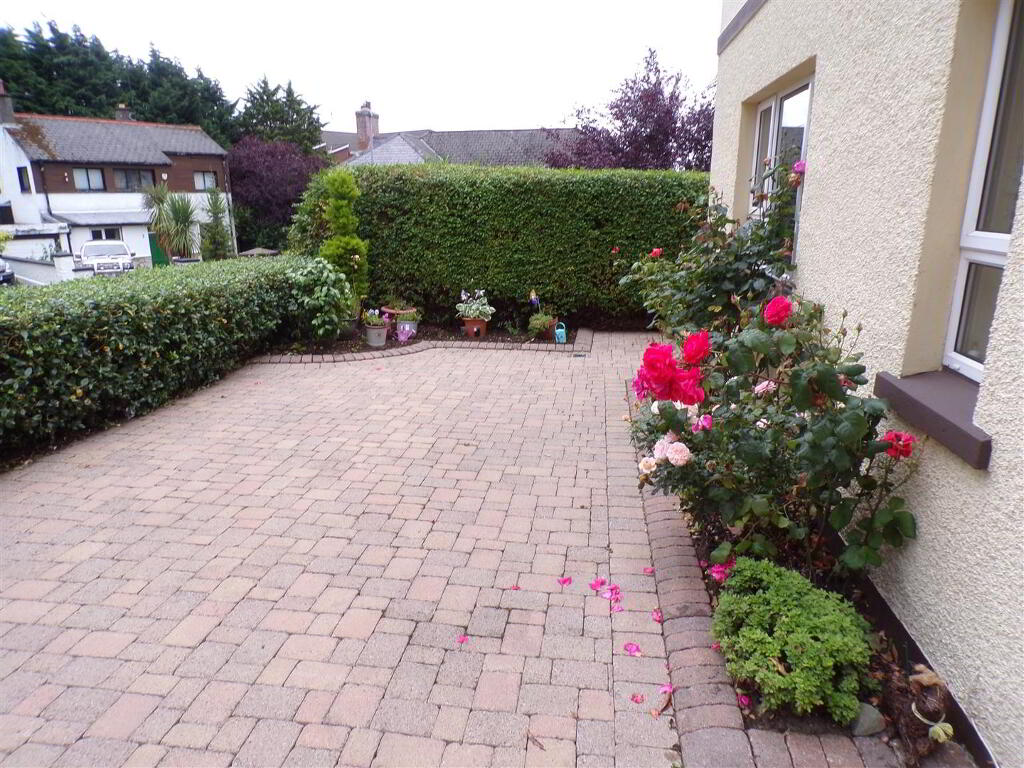 Extensive brick pavior to front and driveway Outside light Enclosed lawn to rear Paved patio area