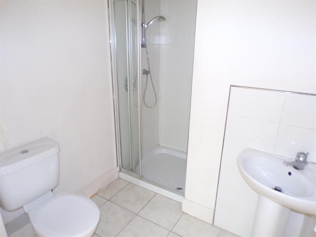 Comprising of fully tiled walk in shower, WHB with tiling around, WC, recessed lighting, tiled floor.